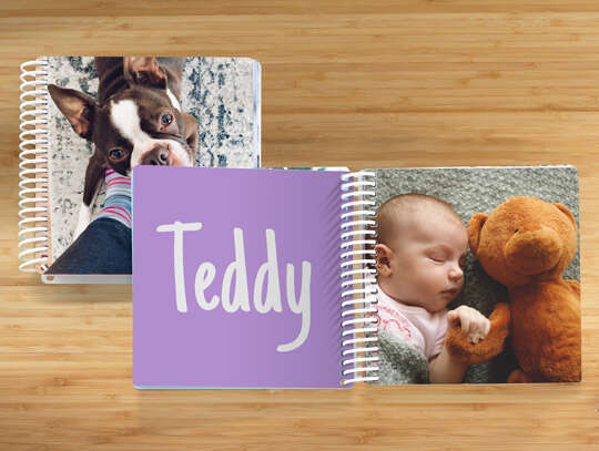 Sélectionnez des photos de famille : Papa, Maman, les grands-parents, le chien ou chat, les oncles et tantes et cousins et cousines. Ou bien si votre bébé est fasciné par les animaux, pourquoi ne pas créer un livre rempli de photos d’animaux ? Par exemple des animaux que votre petit a vus à la ferme ou vos animaux de compagnie. Vous pouvez également en faire un livre d’éveil avec des images d’objets de différentes couleurs. Ou bien encore des photos de votre petit bébé prises lors de sa première année.