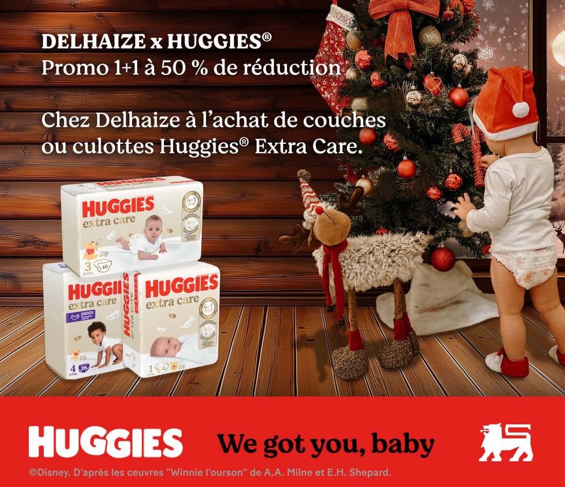 1+1 à 50% de réduction sur les couches ou culottes Huggies® Extra Care*